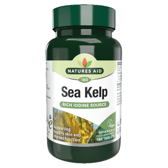 Natures Aid Sea Kelp provides a natural source of iodine, an essential mineral that supports healthy thyroid function, energy metabolism, and cognitive performance. Harvested from pristine sea waters, this kelp supplement offers a balanced way to maintain normal thyroid hormone production and overall vitality. Each tablet is carefully formulated to deliver consistent, high-quality nutrition derived from natural sea plants.